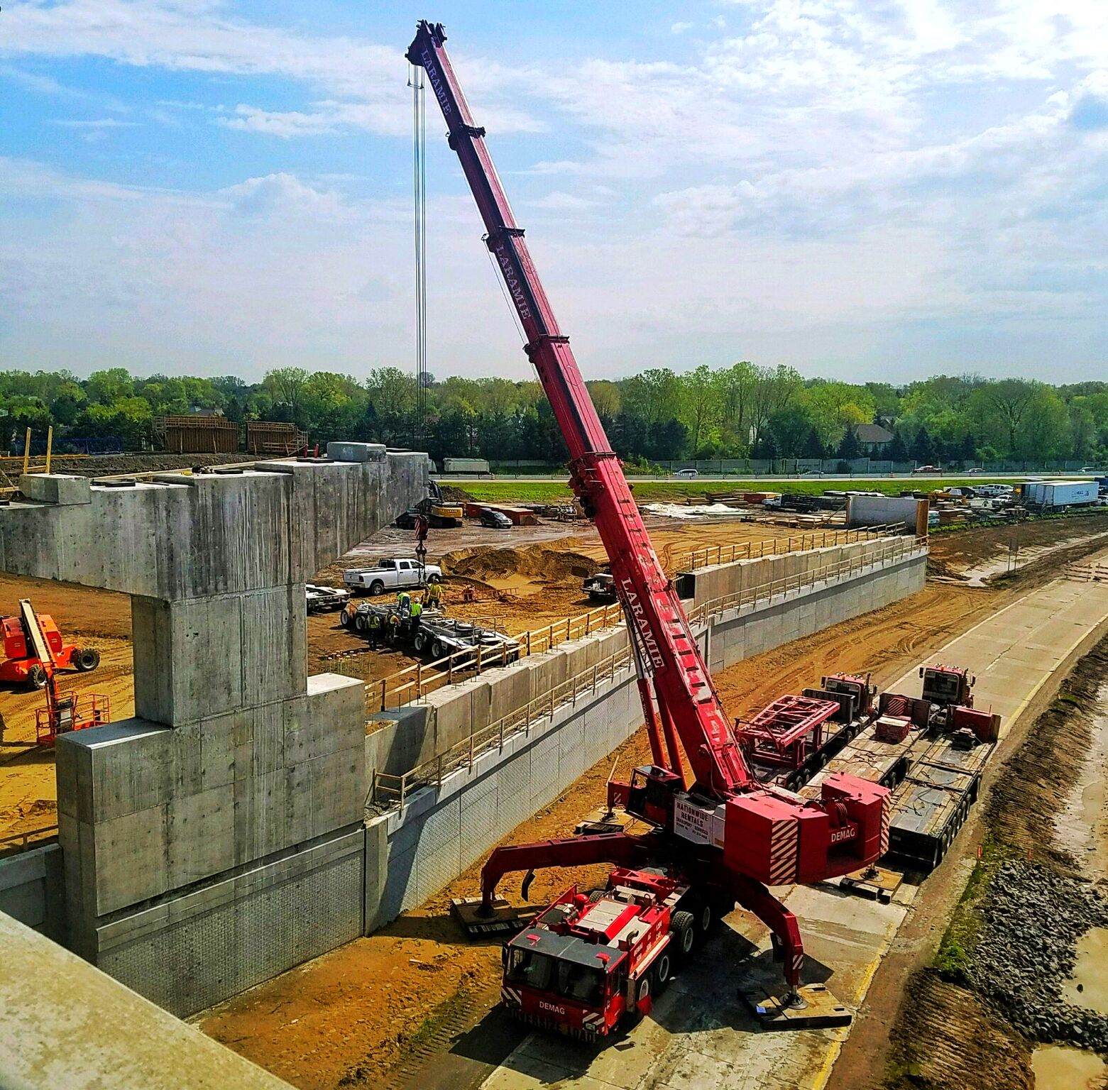 Laramie’s mobile crane fleet offers lifting capabilities from 22 to 500 tons. Cranes are outfitted with off-settable telescoping jib extensions and have been purchased with the longest reach capabilities. Several truck cranes have quick disassembly options in order to facilitate movement on roads under reduced weight limits or during seasonal weight restrictions. All-terrain cranes and truck cranes are available on a manned and maintained basis but are also available on bare rental provided the renter has a current working agreement with Local 324 Operating Engineers Union chartered in the state of Michigan. Nationally, Laramie works in cooperation with other trades.
